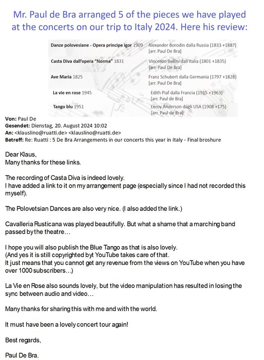 Zu diesem Stück – dem „Chor der hebräischen Sklaven“ oder „Gefangenenchor“ aus der Oper Nabucco. Hier haben wir im zweiten Teil eine spzielle Methodik eingesetzt - während die dritte Stimme die Melodie spielt, spielen die anderen eine Begleitung, weche direkt ans Herz geht - hören Sie selbst
